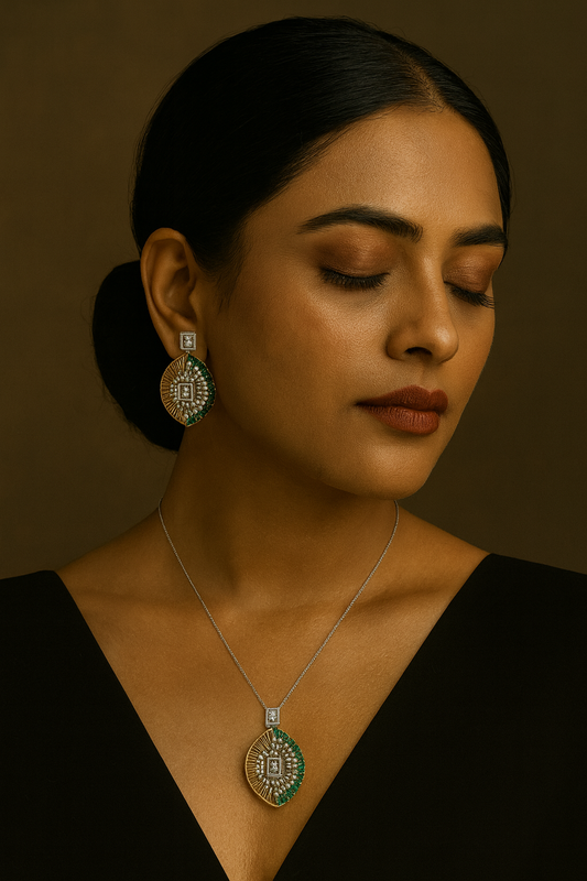 GREEN DIAMOND PANDANT SET FOR WOMEN