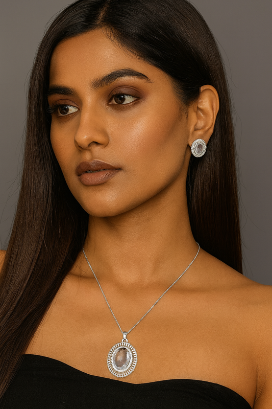 BEAUTIFUL OVAL SHAPE WHITE CZ STONE PENDANT SET FOR WOMEN