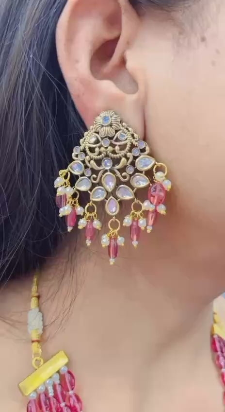 Sunanda Pink Multi layrered Mala Necklace In Kundan Broach For Women