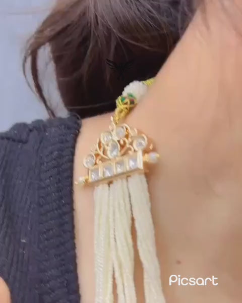 Teenlada sunheri kundan long necklace with jhumkis, perfect for royal look ,weddings and celebration