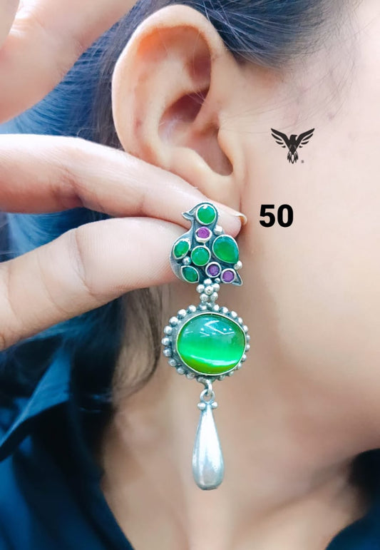 Rohini Silver Look Alike Earings In Turquiose For Women