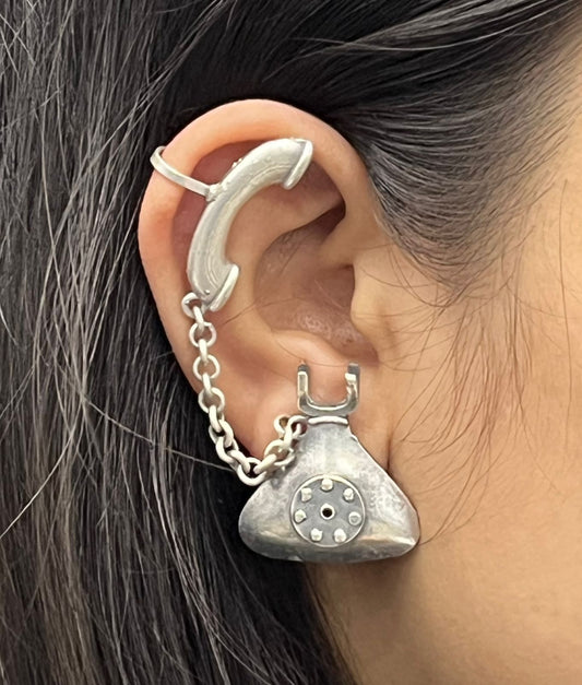 Oxidized Silver Statement Earrings with Vintage Phone Design