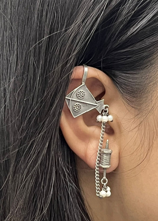Unique Festive Oxidized Earrings with Kite Design and Pearls