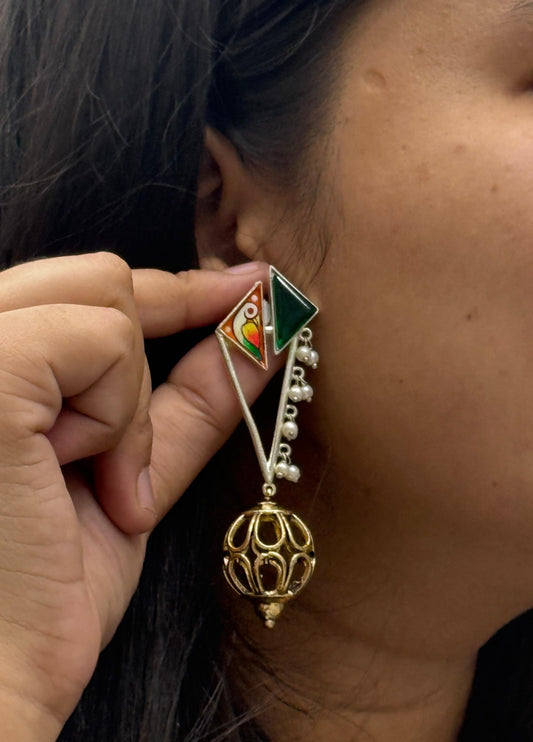 Oxidized Silver Jhumka Earrings with Colorful Enamel Design