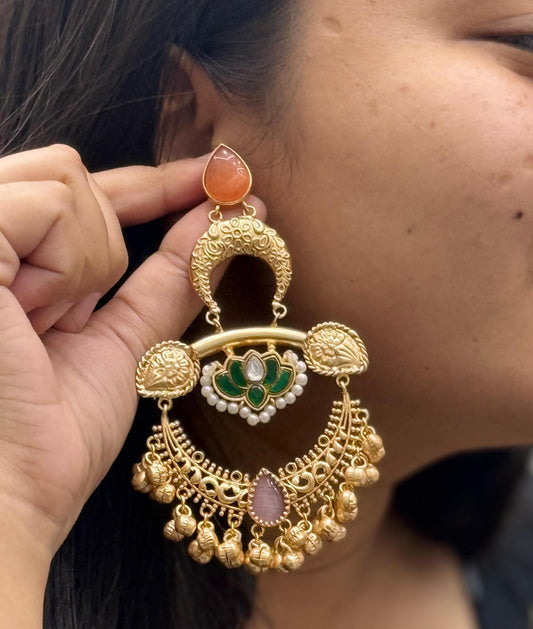 Ethnic Gold-Plated Chandbali Earrings with Enamel and Beaded Drops