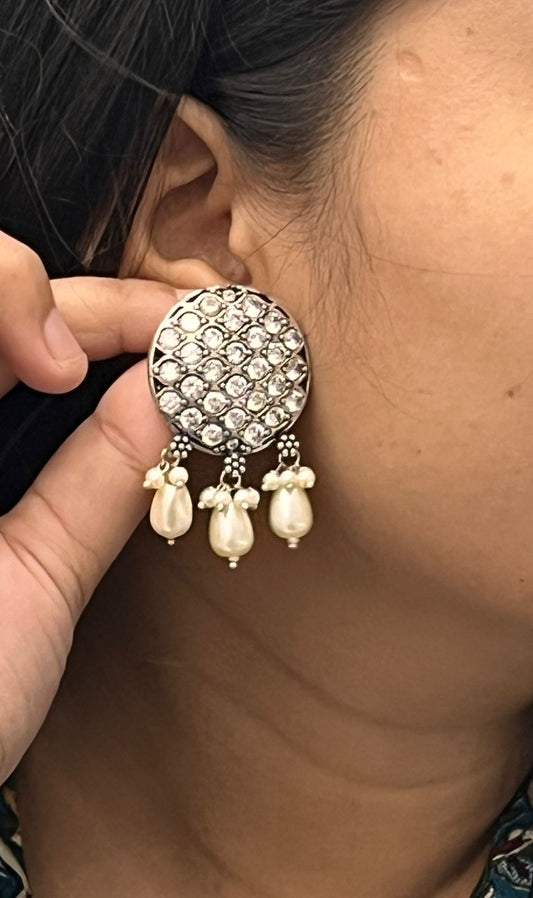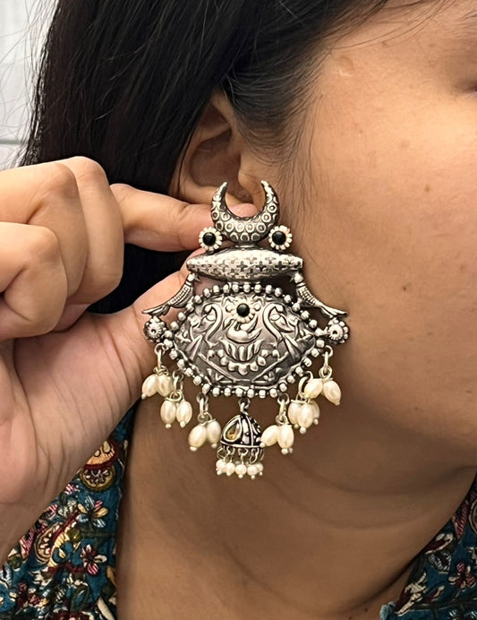 Ethnic Tribal Style Earrings and Oxidized Silver with Pearl Beads