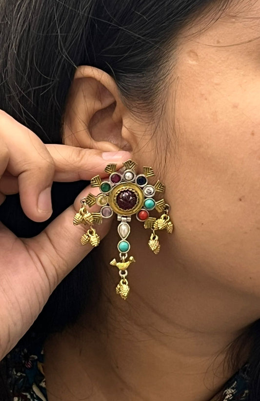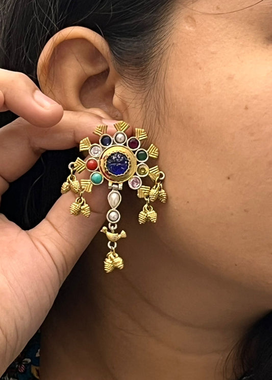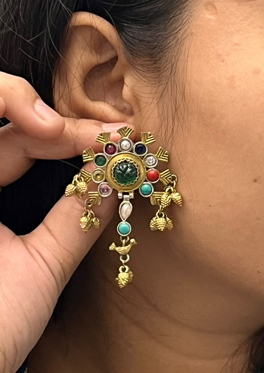 Antique Multicolor Gold Polish with mint Green Stone Earrings