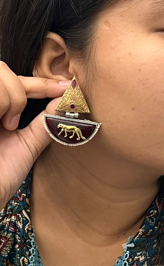 Gold Plated Leopard Design with Gemstone & Beaded Detailing Earring