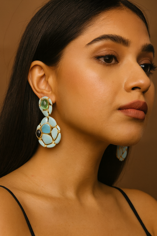 Blue & Green Doublet Statement Earrings