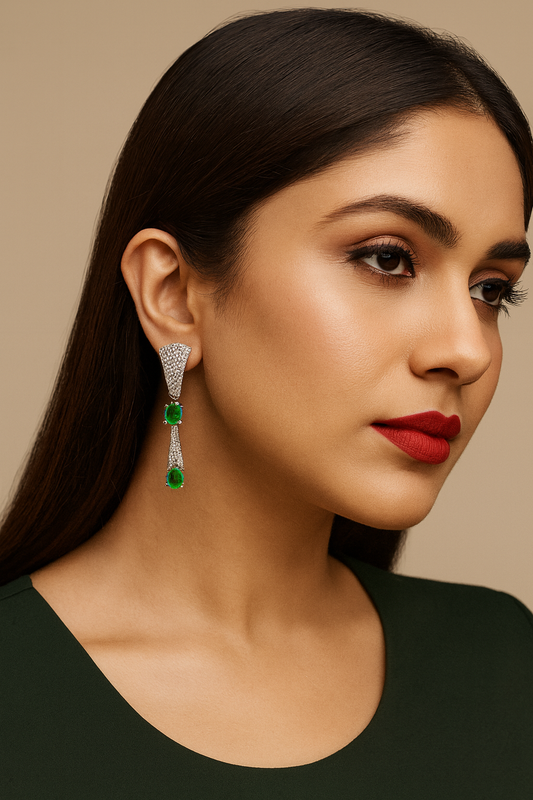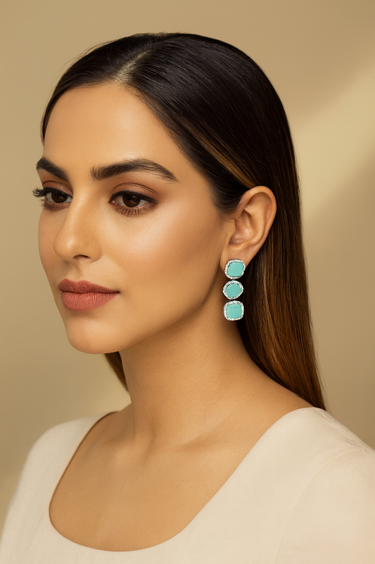 Elegant Long Drop Earrings with mint green Gemstones for Women And Girls