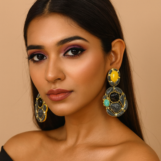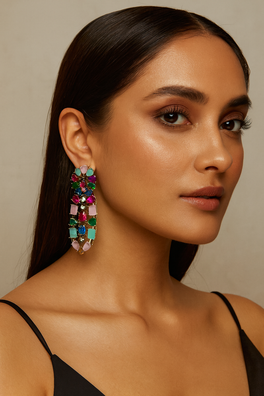 Statement Drop Earrings with Red Ruby & Green Emerald Doublet for women