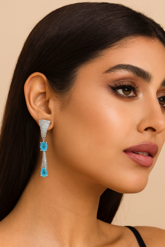 Elegant Long Drop Earrings with blue Gemstones for Women And Girls