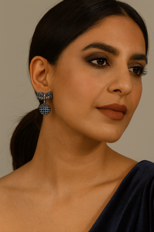 Navy Blue Crystal Ball Drop Earrings for Women and Girl