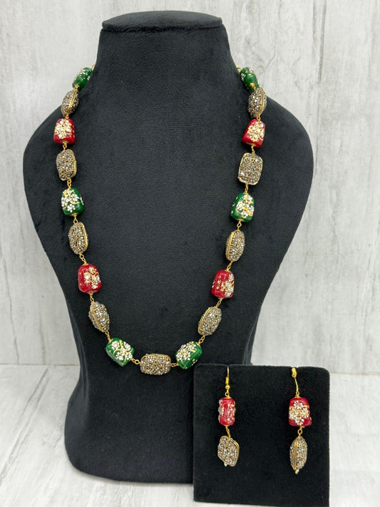 JAIPURI TUMBLES WITH TURKISH BALLS MALA IN PINK AND GREEN FOR WOMEN