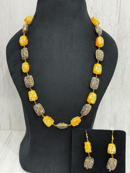 JAIPURI TUMBLES WITH TURKISH BALLS MALA IN YELLOW FOR WOMEN