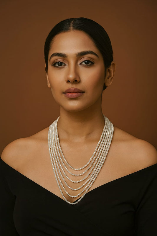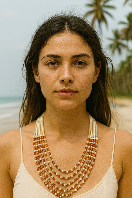 Elegant Orange Bead & Pearl Multi-Strand Mala for Women