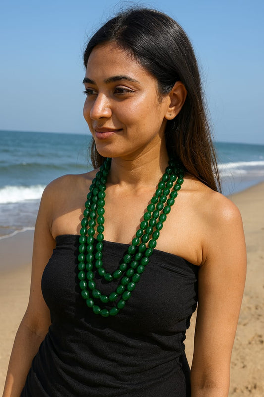 Ethnic Handcrafted three Layer Green Beaded Cz Mala for Women