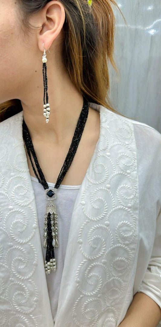 Vanshika jewels Princess look necklace in cubic zirconia in black stone and beads