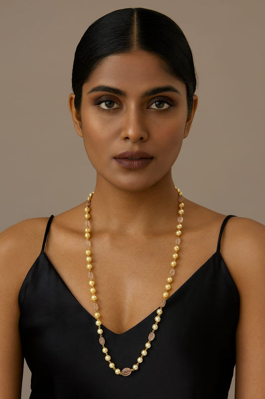 Elegant Peach Crystal & Golden Bead Lightweight mala for women