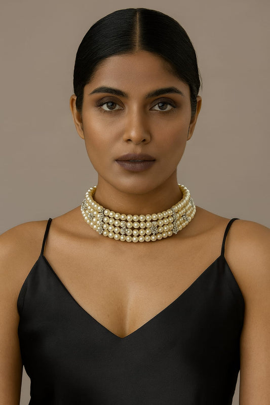 Pearl & Stone Embellished Multi-Strand Choker For Women And Girl
