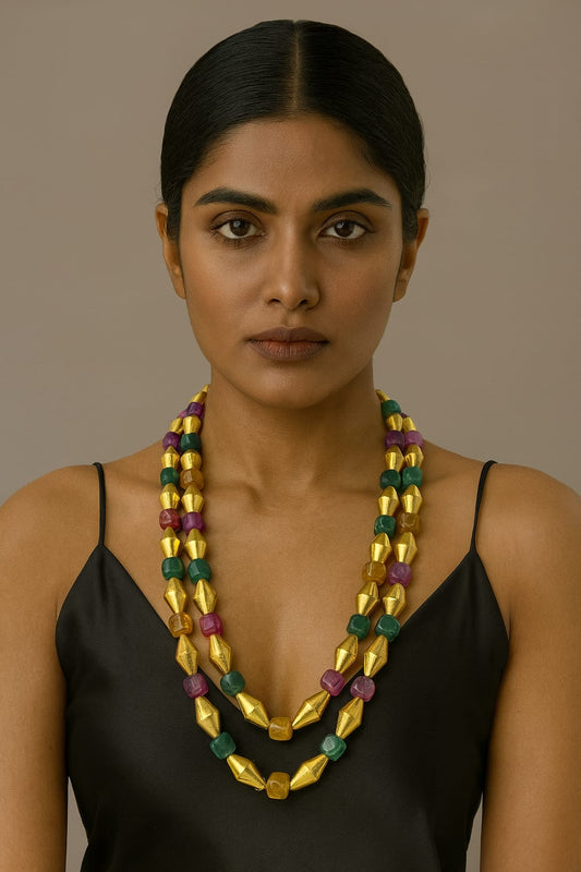 Bold Gold-Toned Multi-Color Beaded Double Layer Ethnic mala for women