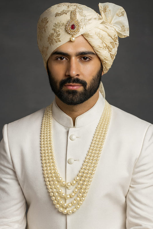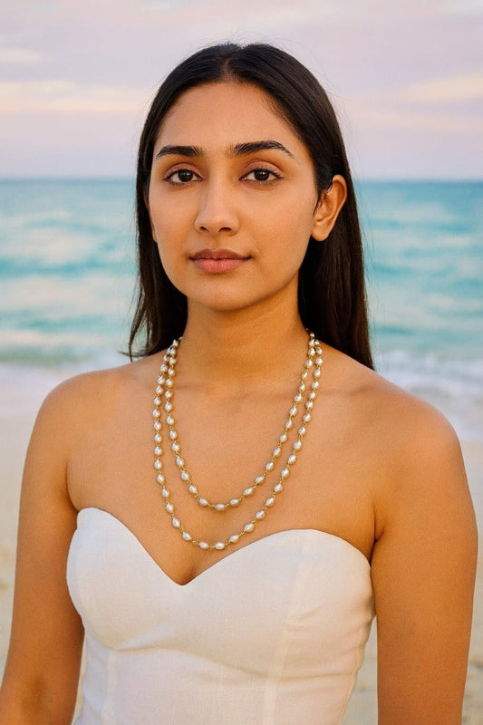 Elegant Double Layer White and Gray Pearl with Golden Bead Mala For Women
