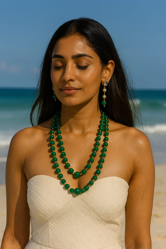 Unique Green Beaded Mala With Designer Multi-Layer For Women