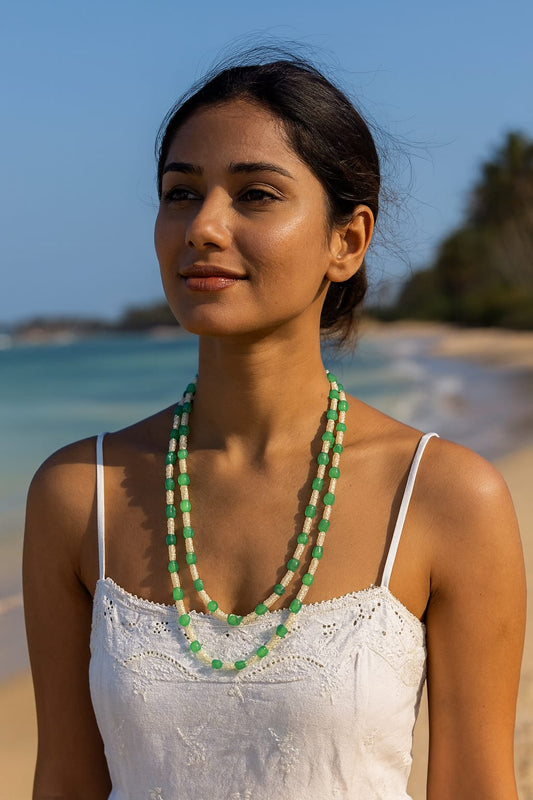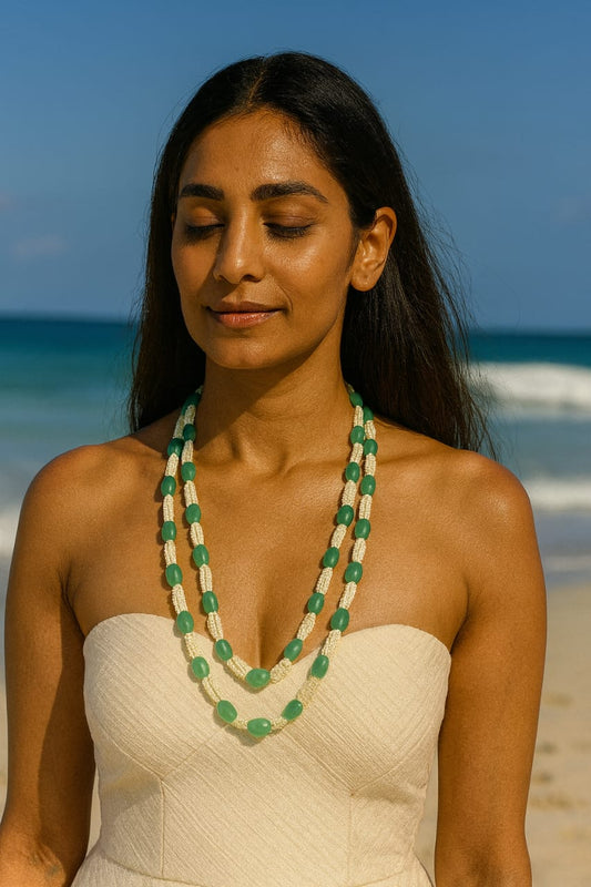 Elegant Handcrafted Green Onyx & White Beaded Double Layer Mala For Women