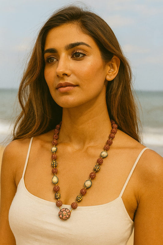 Ethnic Rudraksha beads Mala with decorative stone accents