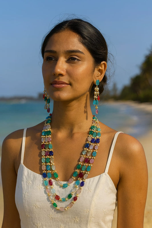 Elegant Multi-Color Beaded Mala With Three layer for Women
