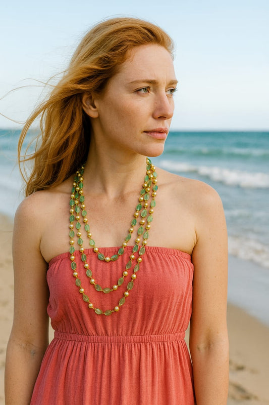 Ethnic Green Beads & Golden Pearls Mala For girl and Women