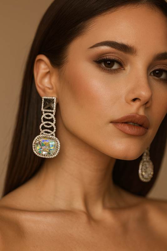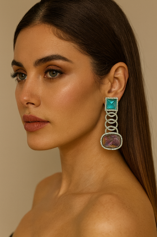 Elegant Rainbow Crystal & Grey CZ Stone Drop Earrings