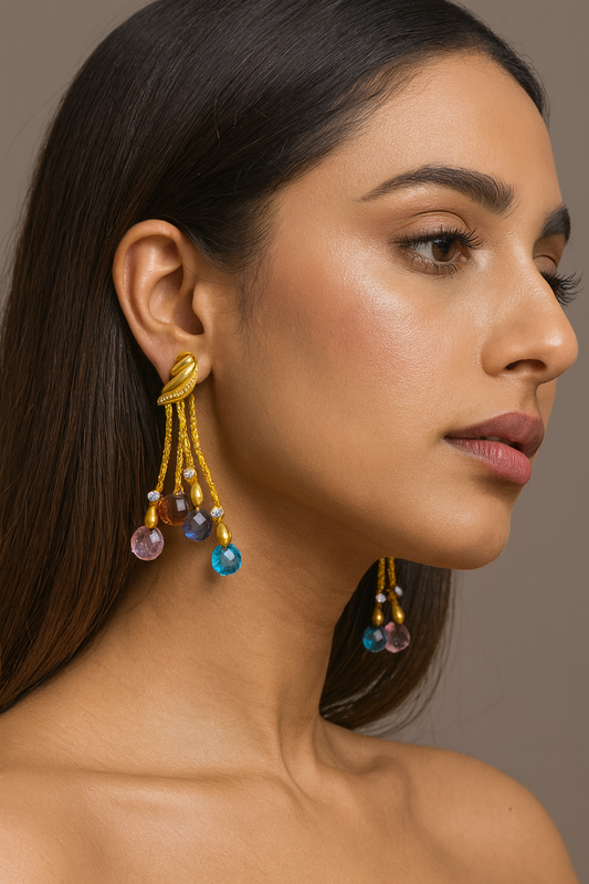 Elegant Gold Chain Earrings with Colorful CZ Stone