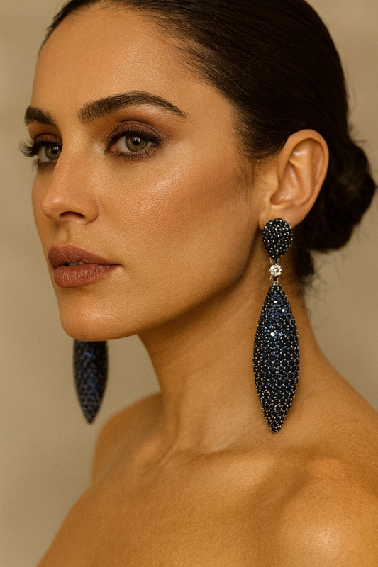 Midnight Blue Crystal Drop Earrings For Women And Girls