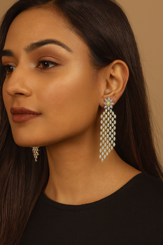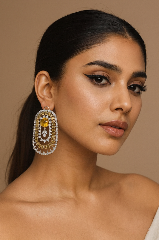 Glamorous Yellow CZ stone Long Party Wear Earrings