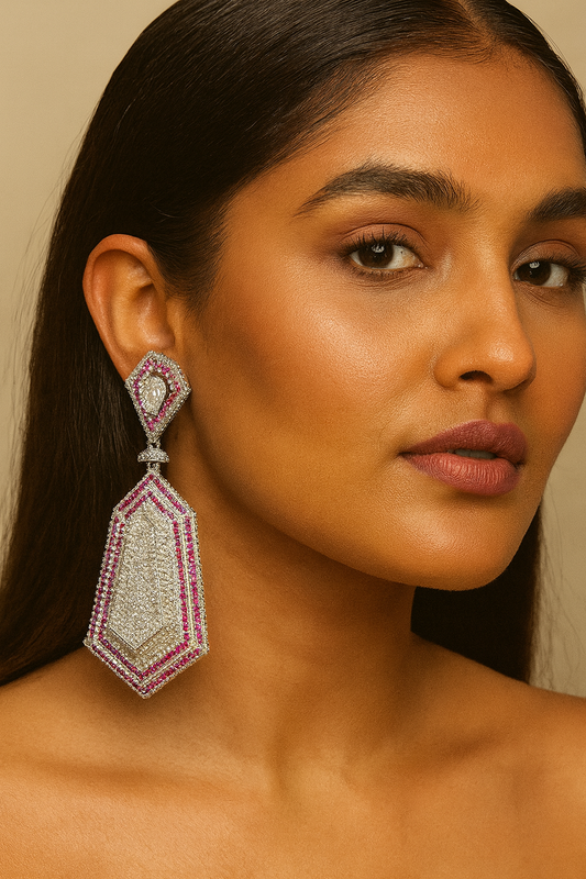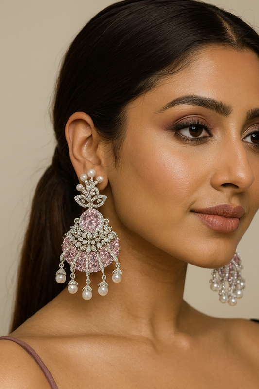 Geometric Pink & CZ Stone Statement Earrings For Women