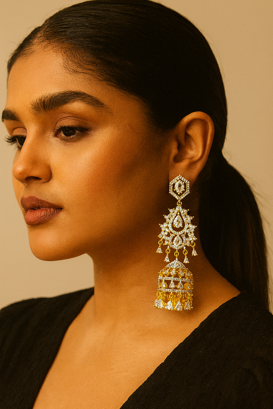 Gold Plated CZ Crystal Jhumka Earrings for Women And Girl