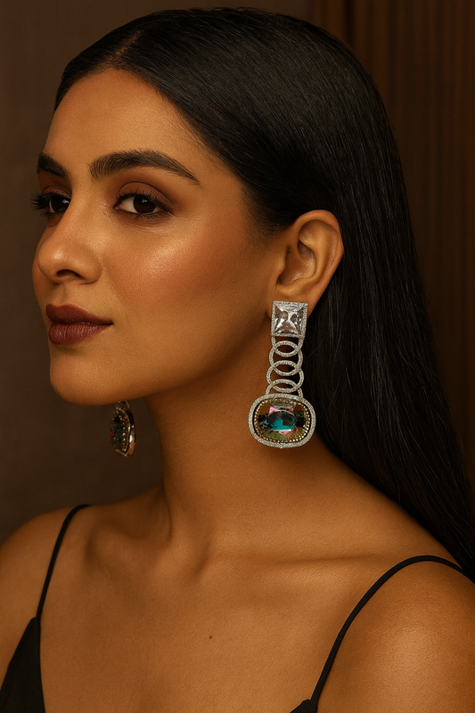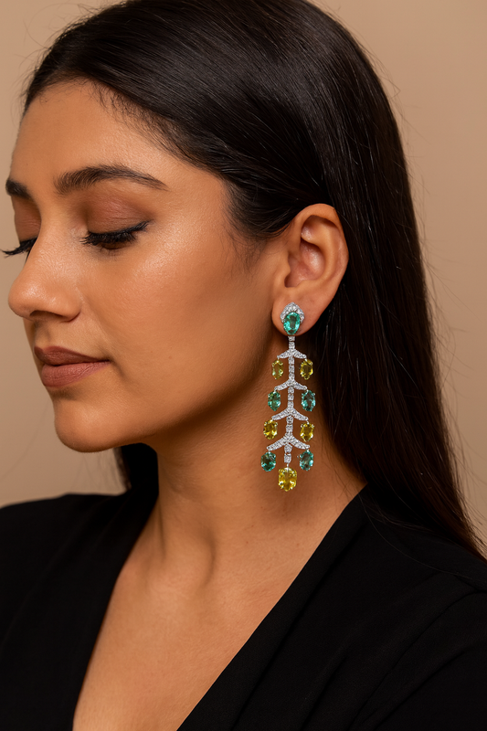 Green & Yellow CZ stone Diamond AD Earrings For Women and Girl