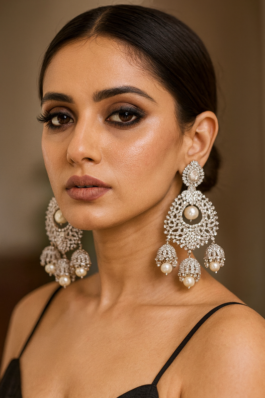 Silver Plated Crystal & Pearl Bridal Chandelier Earrings
