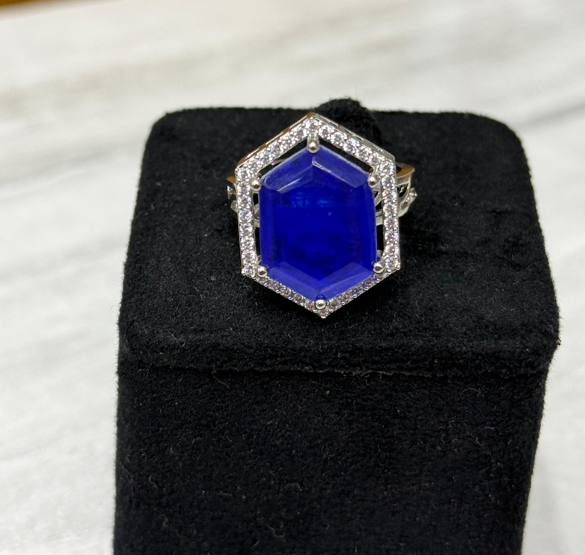 Doublet With Side CZ Ring in blue for woman