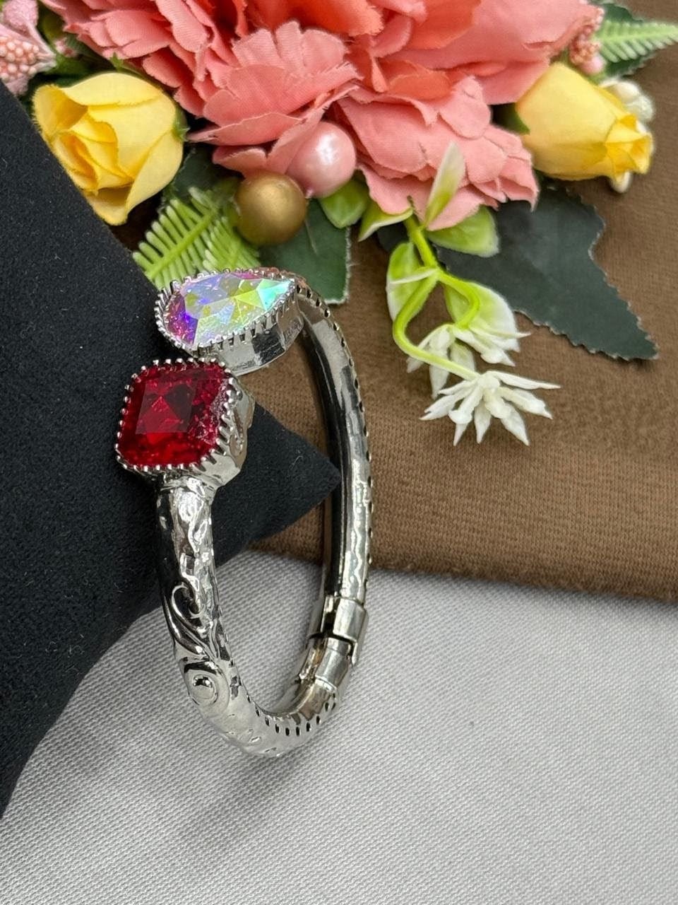 SWAROSKI RED STONE SILVER POLISH DIAMOND FOR WOMEN