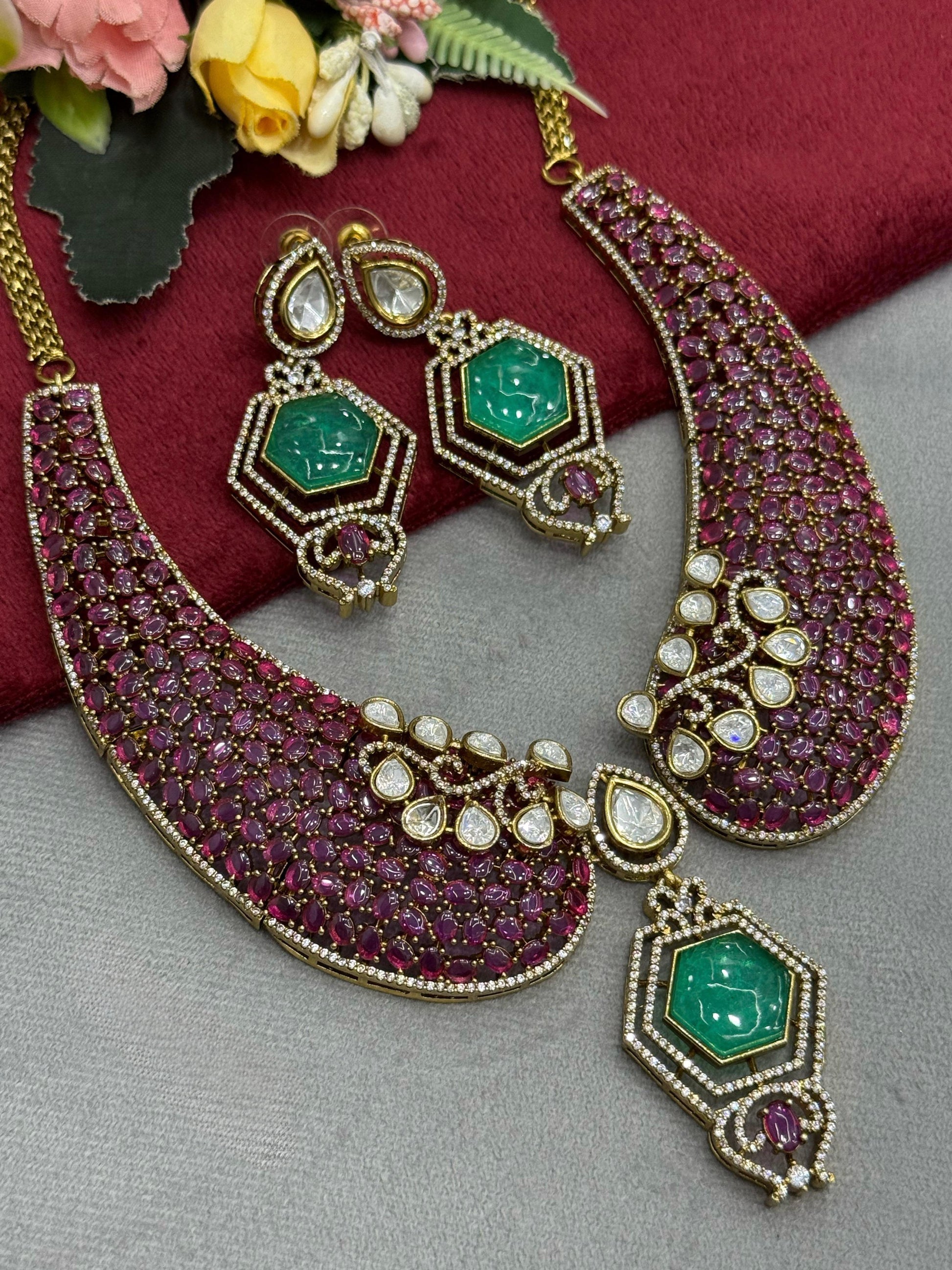 These necklace in meenakari and duzy stone with earrings is perfect for any indian outfit.