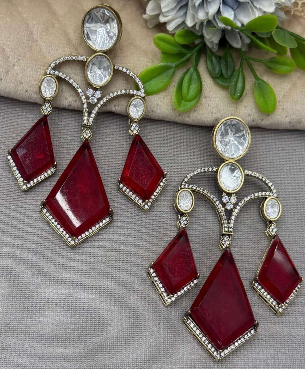 Long Earrings with Doublets In Mossanite in red for woman