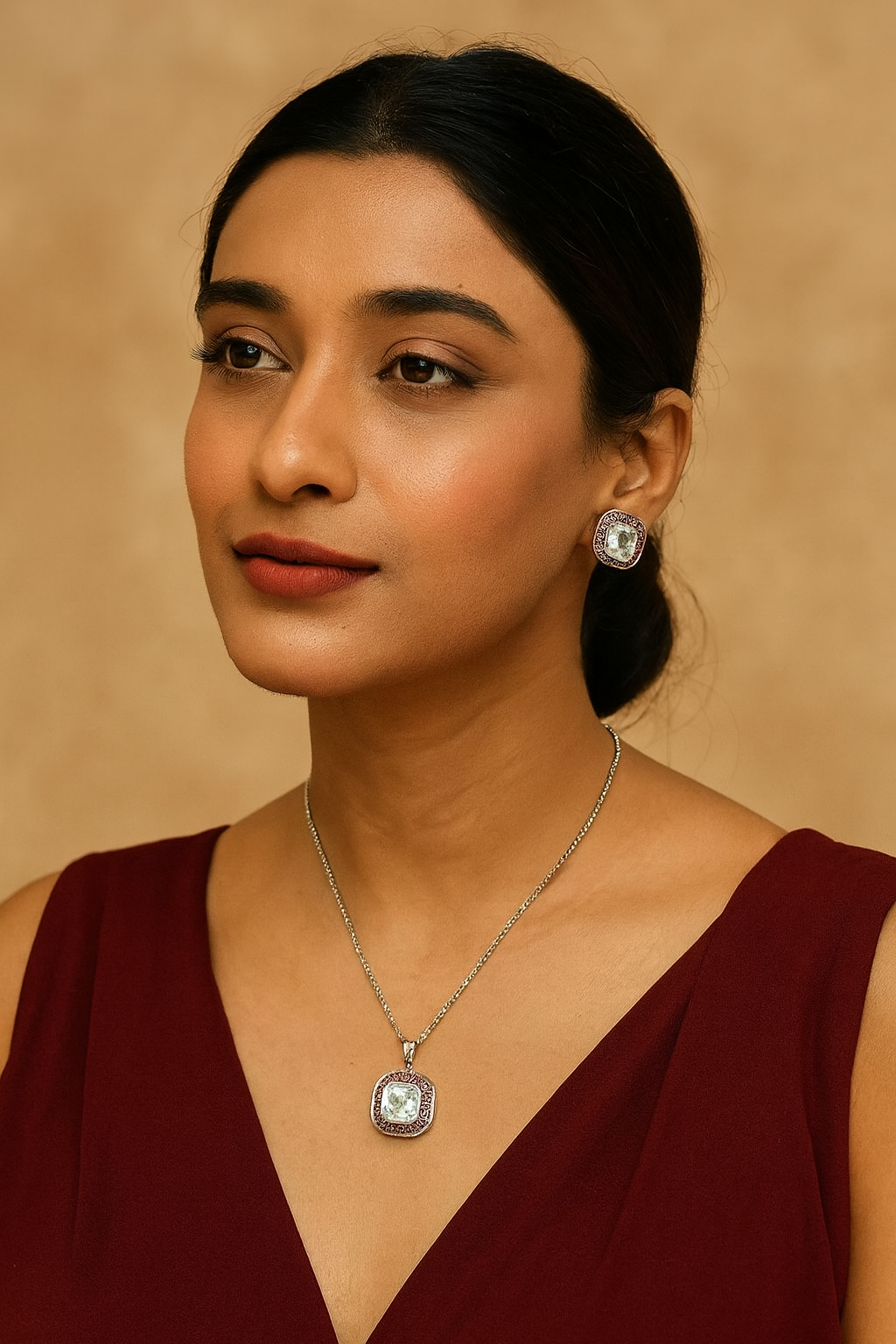 MINT BLUE COLOUR WITH SQUARE SHAPE PENDANT SET