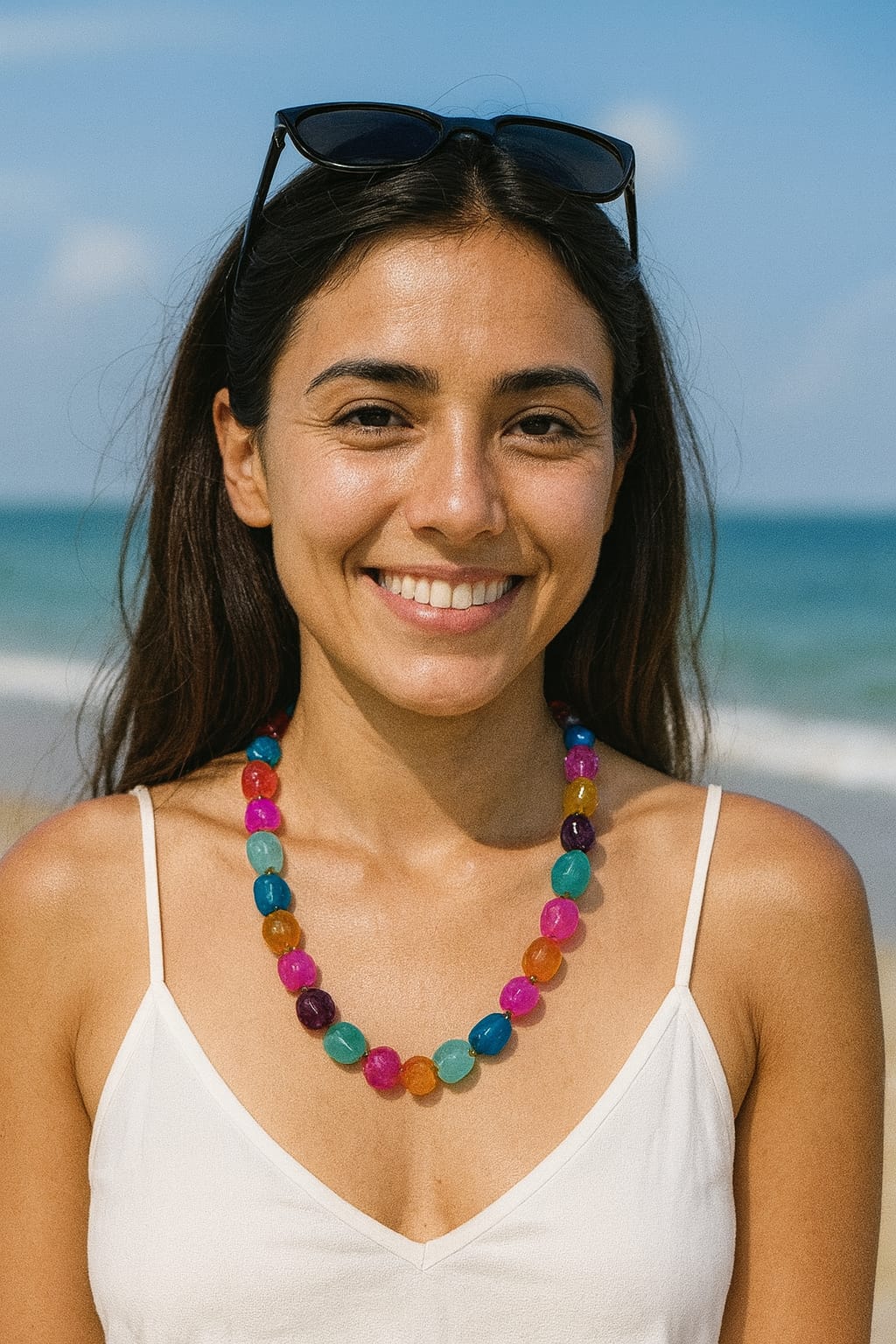 SINGLE LAYER MULTI COLOUR ONYX BEADS MALA FOR WOMEN