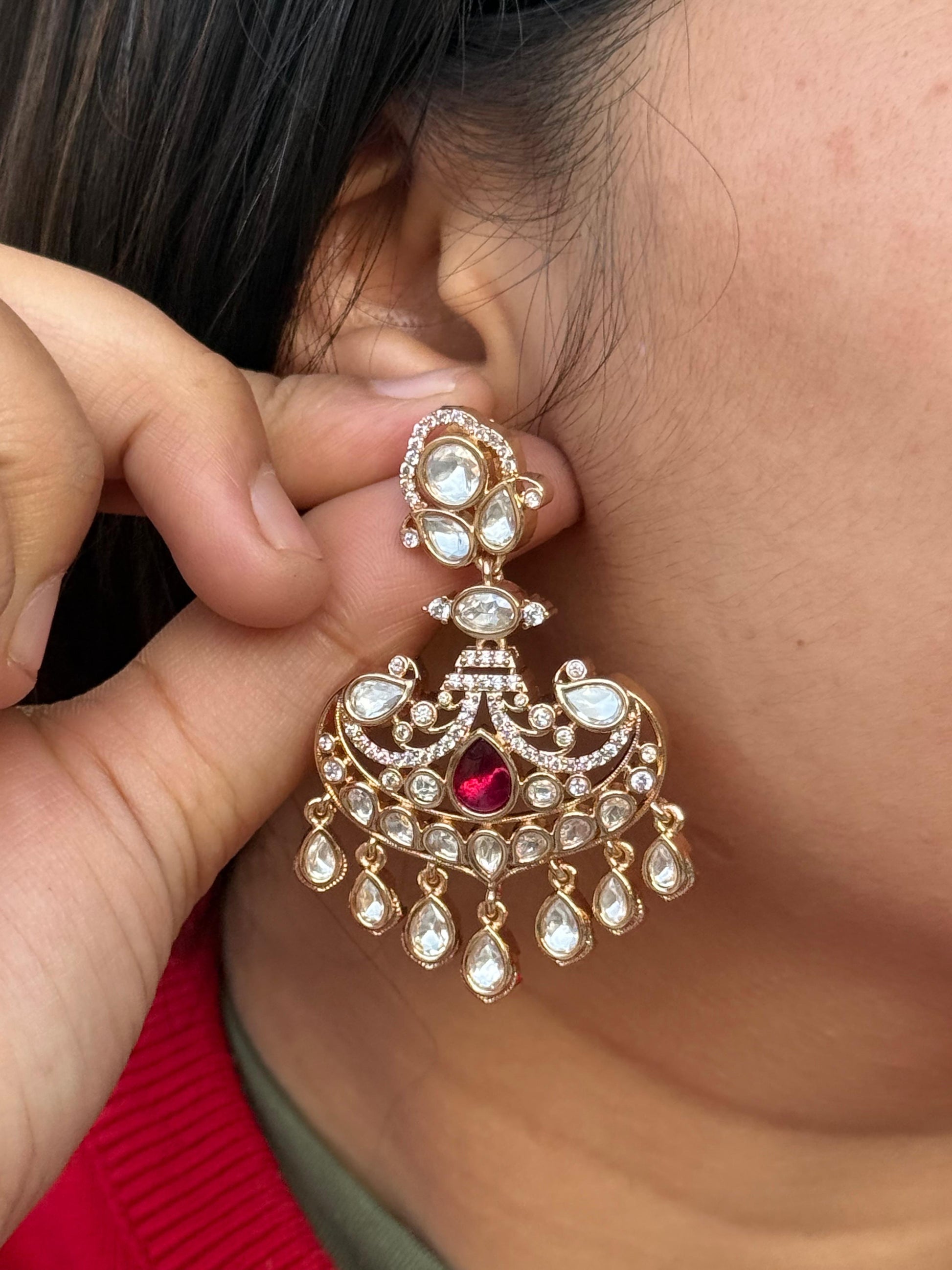 Sunheri Kundan With Red Stone Earring in red for woman