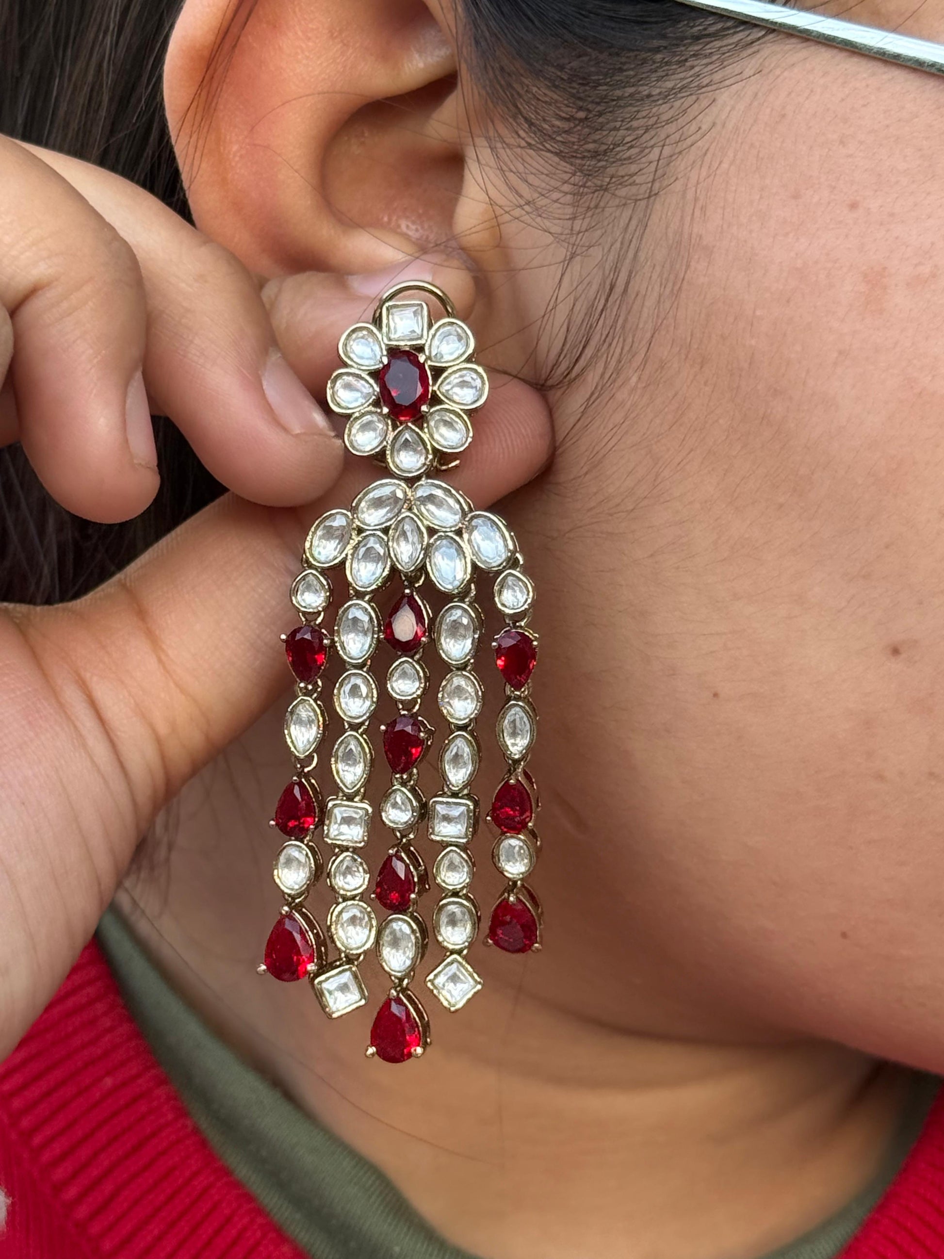 Three Layer Mossanite With Kemp Stones Earring in red for woman